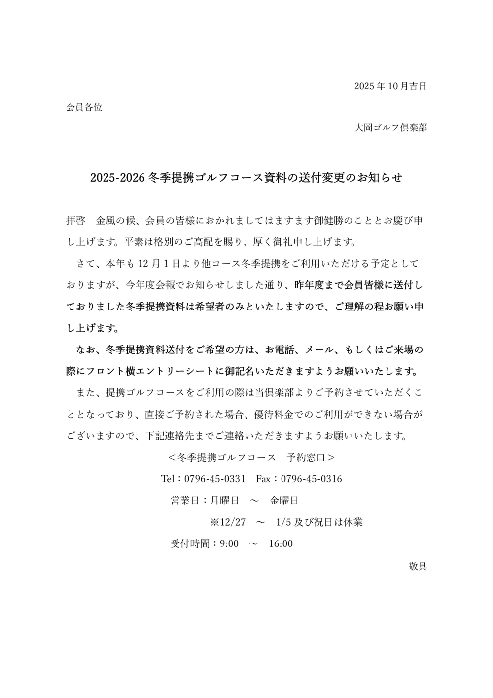 *2025年より冬季提携コースの資料は希望者にのみ |